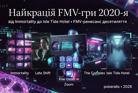 Сьогодні FMV — це вже не «курйоз 90-х», а повноцінна, зріла форма інтерактивного наративу. Нижче — п’ять найкращих представників жанру 2020-х, які показують, наскільки далеко ми зайшли.